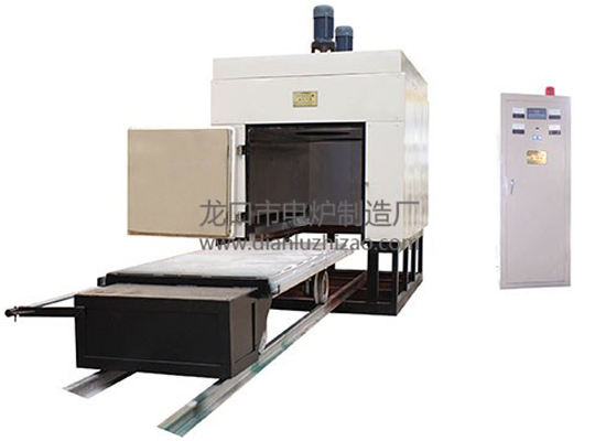 臺車行進是由安裝于底部的蝸輪減速機拖動。加熱元件采用高溫合金電阻帶和電阻絲,通過耐熱鋼引出棒接出爐外。